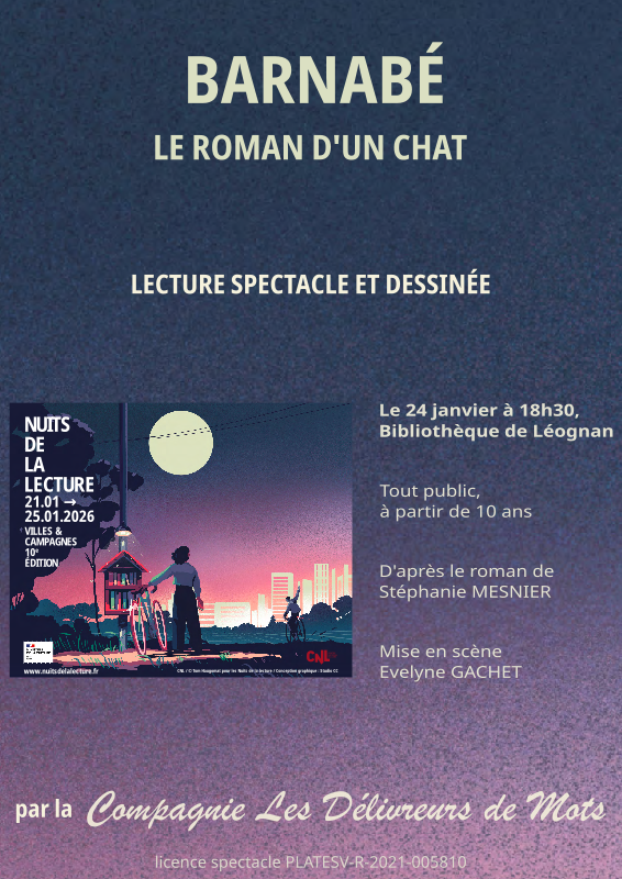Le samedi 24 janvier à 18 h 30, bibliothèque de Léognan